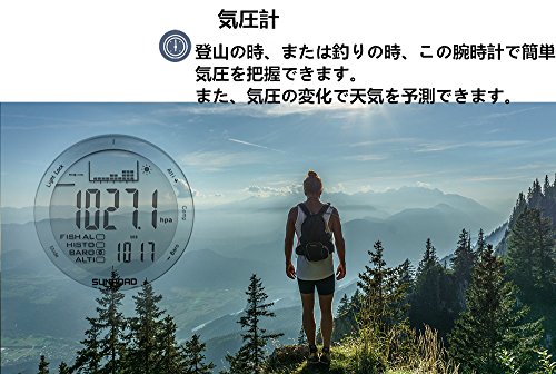 Sunroad 손목시계 다기능 스포츠 워치 방수 디지털스아우토도아시계 고도계 기압계 온도계 일기예보 크로노 그라 기능 낚시 하이킹 등산 수렵6 색선택 가능