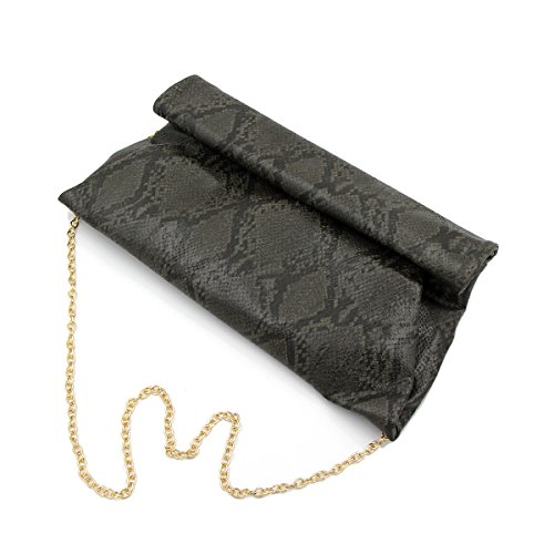 Premium Snakeskin PU Leather Roll Up Flap Clutch Evening Bag, Light Grey