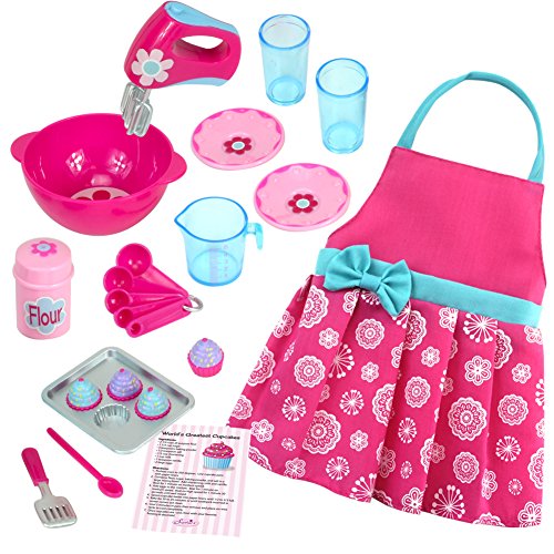 -. Title : 18 PC. Set of 18 Inch Doll Apron Plus Baking Accessory Set for Dolls, Mini Doll Food & Apron Cookware Set by Sophia's