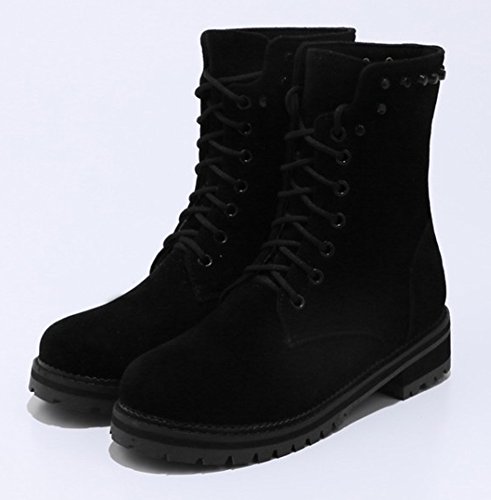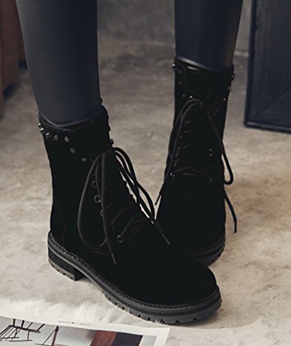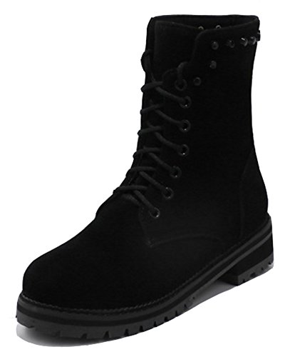 Binding : Apparel Product Description The fall comes, and it is time for elegant women to wear various boots. A pair of suitable boots can add much charm to you. Here is a pair of pretty booties for you. They adopt round toe design, which can embellish your foot type better. The chunky low heels make them very comfortable to wear. The lace up closure is so convenient, stylish and artistic. The outsoles are made of rubber, wearproof and non-skid. They have no many decorations, which conveys an idea of simpleness. In addition, they are easy matching. Welcome to choose and buy! (the black 1 shoes are made of synthetic leather, and black 2 made of synthetic nubuck.) Aisun is the legal brand, registered in the United States Patent and Trademark Office. All rights reserved. 0