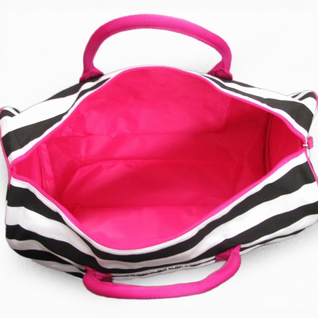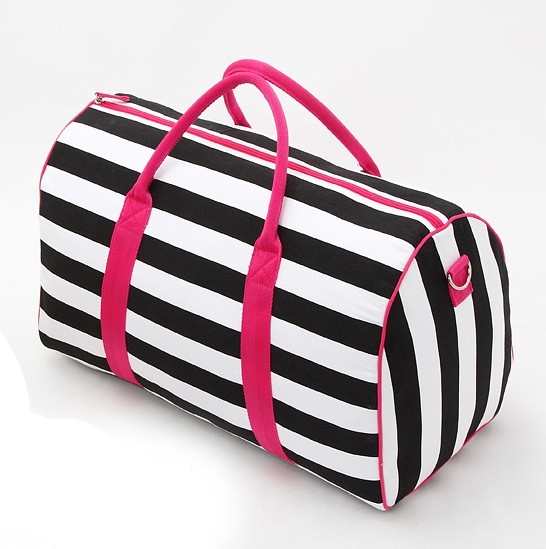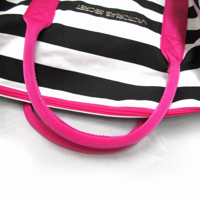 ブラック×ホワイトのボーダーに、ピンクの持ち手がアクセント♪