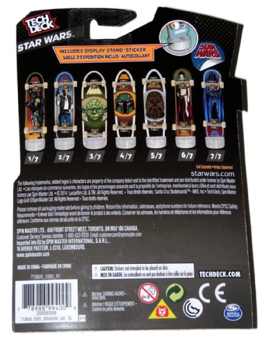 - Feature : Santa Cruz Star Wars Boba Fett Tech Deck Fingerboard / Includes display stand and sticker / Mini Tool included for changing wheels and trucks / Number 1 out of 7 / Ages 6 and up