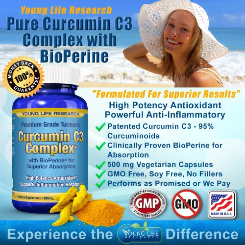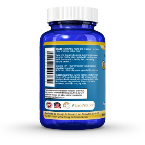 -. Binding : Health and Beauty -. Brand : Young Life Research -. EAN : 0045635966116 -. Feature : Curcumin C3 Complex® - 500mg Turmeric extract yielding 95% Curcuminoids plus BioPerine® black pepper extract bioavailability enhancer. 120 Vegetarian Capsules. / NO GMO's, preservatives, artificial ingredients, or magnesium stearate. Free of soy, milk, gluten, eggs, peanuts, shellfish. Made in the USA in a GMP certified facility. / There are lots of choices, but don't compromise your health to save a few pennies - Only Young Life Research stands out from the crowd! / 100% MONEY BACK GUARANTEE - No hassle risk free 90 day guarantee. / Proven Health Benefits - High potency antioxidant, supports healthy joints, brain health, cardiovascular health, healthy vision, healthy liver, and healthy immune function.* Try it out now and experience the Young Life Research difference! -. IsAdultProduct : 0 -. Label : Young Life Research -. LegalDisclaimer : *The statements on this page have not been evaluated by the Food and Drug Administration. This product is not intended to diagnose, treat, cure or prevent any disease. -. Manufacturer : Young Life Research -. MPN : 64911140 -. PackageQuantity : 1 -. PartNumber : 64911140 -. ProductGroup : Health and Beauty -. ProductTypeName : HEALTH_PERSONAL_CARE -. Publisher : Young Life Research -. Size : 120 count -. Studio : Young Life Research -. Title : Curcumin C3 Complex with BioPerine - Powerful Health Benefits -. UPC : 045635966116