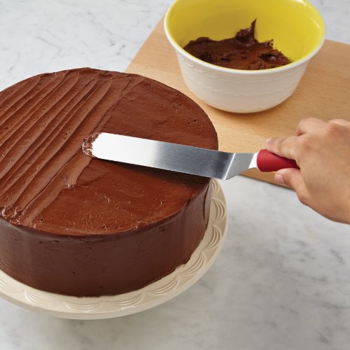 • The durable icing spatula's offset stainless steel blade features a rounded tip and delivers a smooth finish with easy cleanup