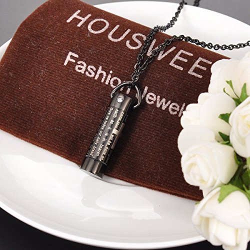 HOUSWEETY Stainless Steel English Cross Bible urn pendant Necklace Memorial Ash Keepsake Cremation Jewelry Black