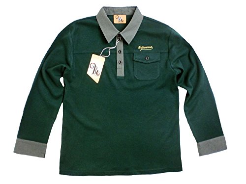 -. Title : 千鳥柄襟刺繍入りフォーマルに映える高級感ある長袖ポロシャツ(JPBt) ダックグリーン 130cm-170cm