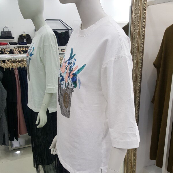 깔끔한 디자인에 나염을 넣어 밋밋하지않고 허리옆 트임을 주어 세련되고 편안한 티셔츠 입니다