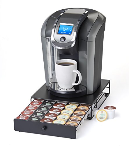 The Nifty Under the Brewer Coffee Pod Drawer is a stylish, space saving way to store your favorite K-Cup packs. The efficient, space saving design allows for you to place the brewer on top of the drawer, so your K-Cup packs do not take up any more of your precious counter space. The Nifty Under the Brewer Coffee Pod Drawer will organize up to 30 K-Cup packs. The sliding drawer construction makes selecting your favorite K-Cup extremely easy. The classy black powder coated design will look right at home on any kitchen countertop.Feature