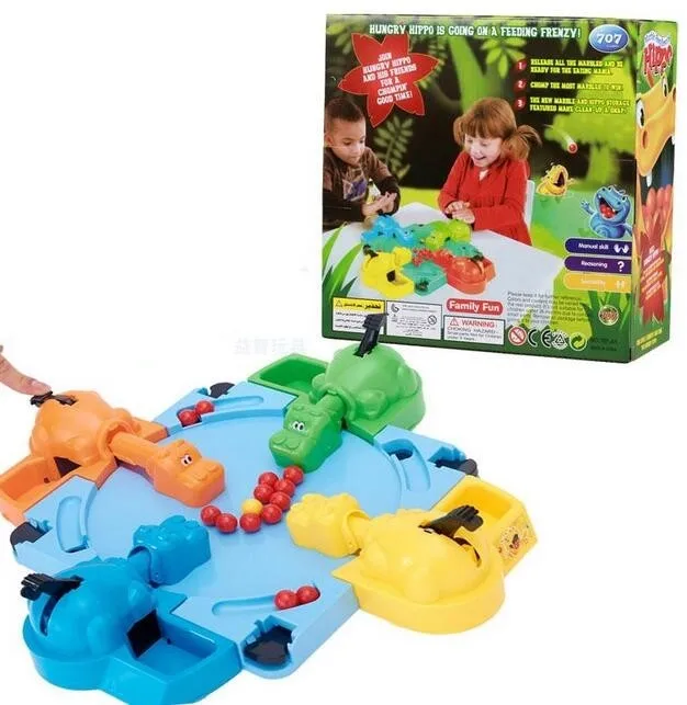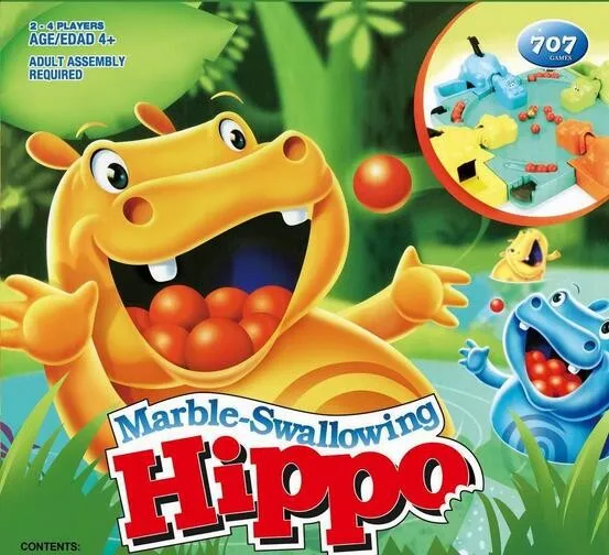 Classic Hungry Hippos game has 4 hippo heads and bodies plus marbles for them to chomp,and 20 marbles included.