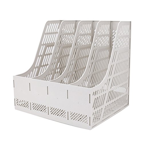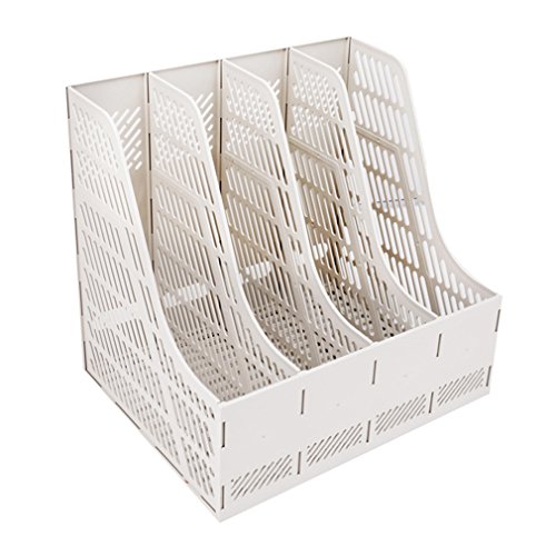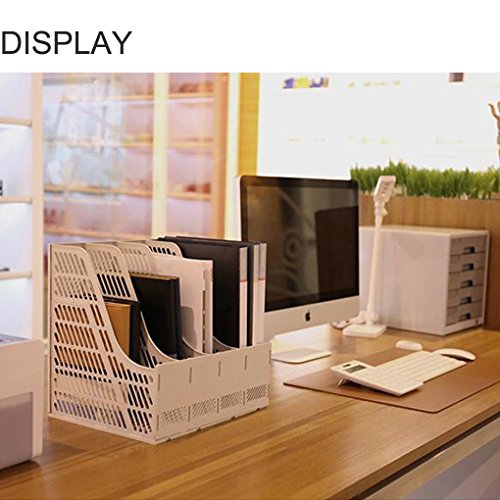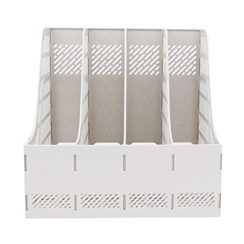 Sayeec Sturdy Desktop Quadruplicate Magazine Plastic Holders Frames File Dividers Document Cabinet Rack Display and Storage Organiser Box Gray
