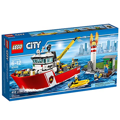 -. Feature : Build a Fire Boat with a detailed bridge, searchlights, a dinghy, a stud-launching water cannon with movable crane arm, and more! / Shoot the "water" pieces to put out the "fire" at the buildable lighthouse with a pier and shack! / Includes boat captain, 2 male and 1 female firefighters, and lighthouse keeper minifigures, plus lots of gear and accessories / L.E.G.O City building toys are compatible with all L.E.G.O construction sets for creative building / Fire Boat is over 11" high, 12" long, and 6" wide. Lighthouse with pier and shack is over 6" high, 6" wide, and 3" deep / 412 pieces - For boys and girls between the ages of 6 and 12 years old
