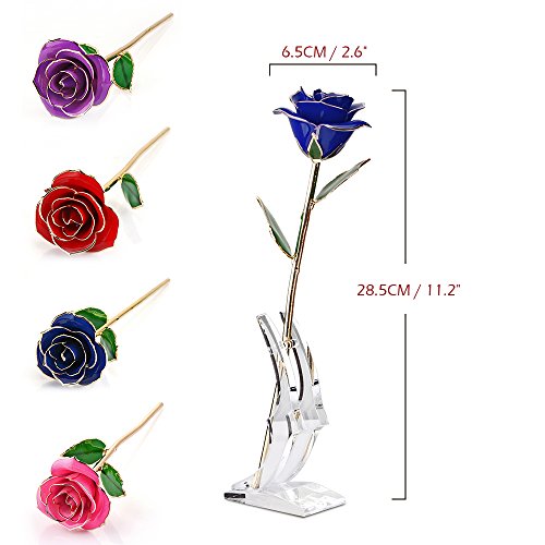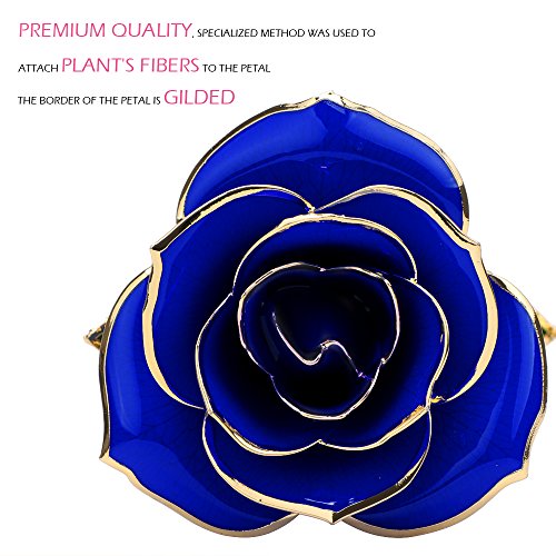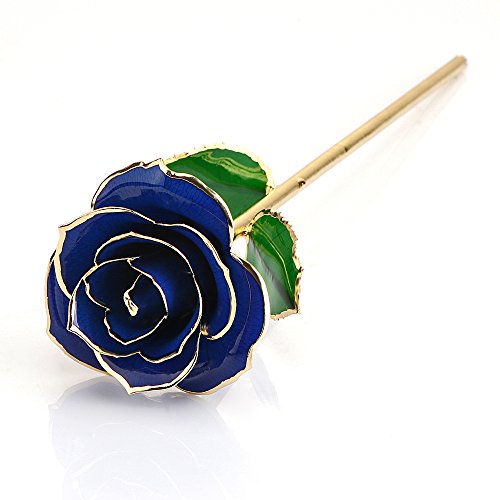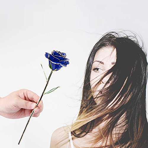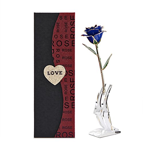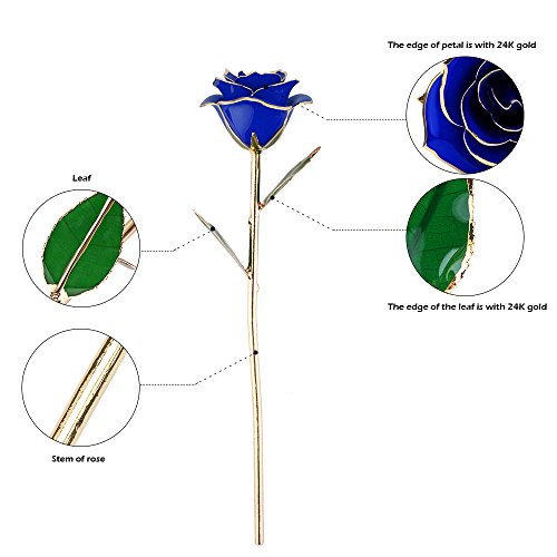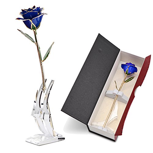 Abedoe Long Stem 24k Gold Rose Flower with Display Stand in Exquisite Gift Box, Best Romantic Gift for Anniversary, Thanks Giving Day, Valentine’s Day, Mother's Day, Birthday Gift (Blue)