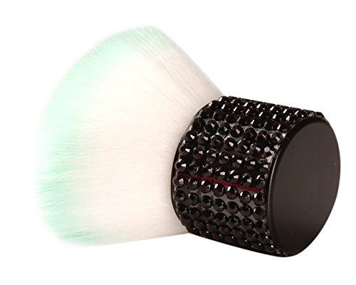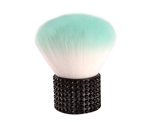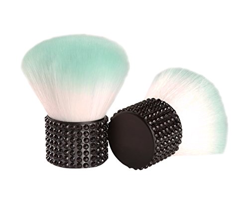 Miss Gorgeous Kabuki Makeup Brush Cosmetic Brush, Portable Mini Makeup Brushes with Short Black Rhinestone Metal Handle,Green