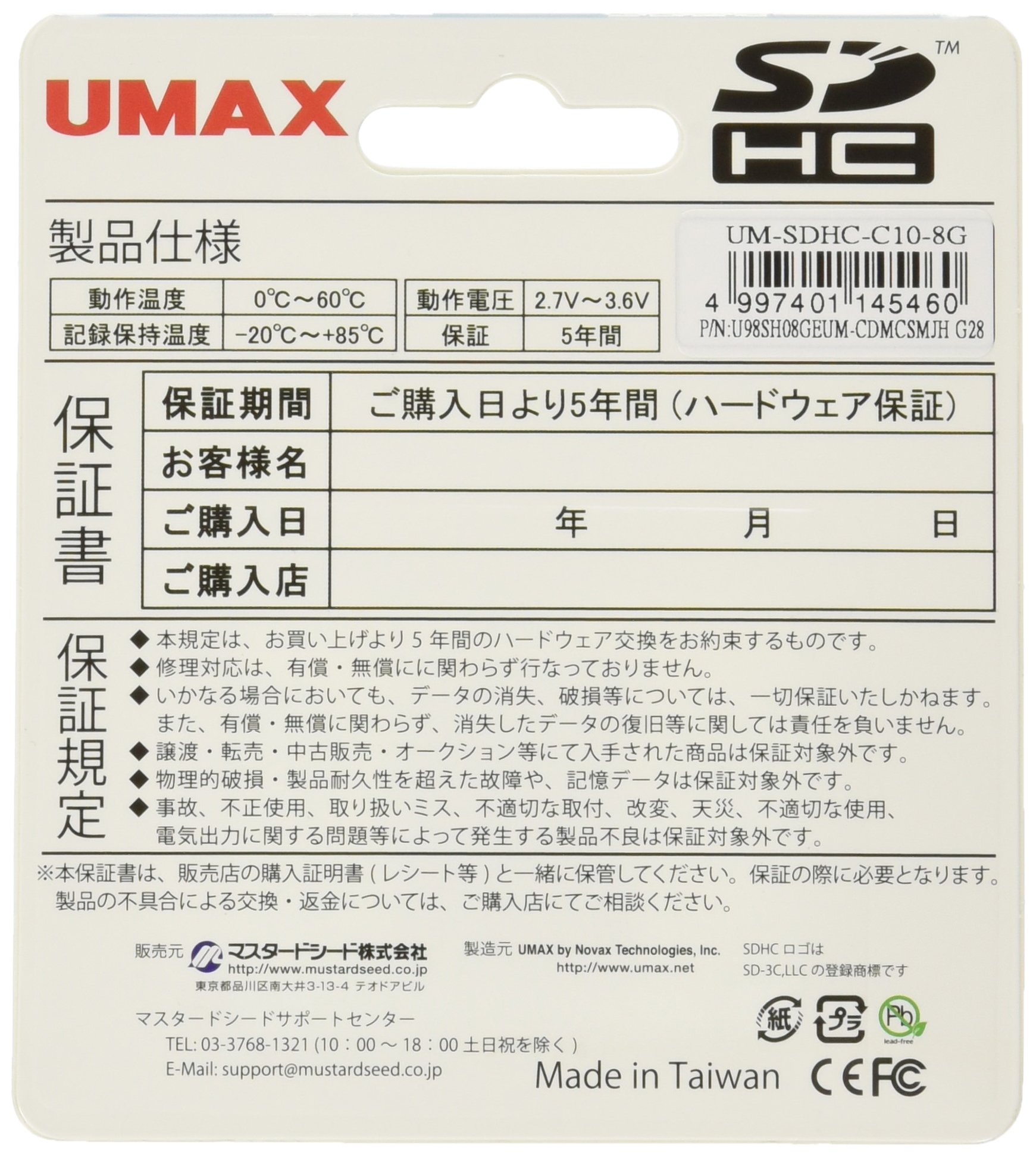 UMAX SDHC Class10 8GB UM-SDHC-C10-8G