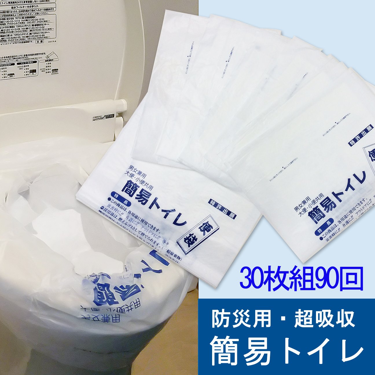* Bags and polymer sheets are included in each 30 pieces * Just set in the toilet at the time of water cut off!