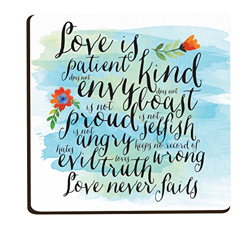 - Features scripture verse 1 Corinthians 13