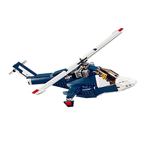 • Enjoy a building challenge; 3-in-1 model: rebuilds into a huge high-tech helicopter or an aerodynamic hovercraft with twin cockpits