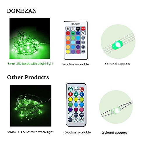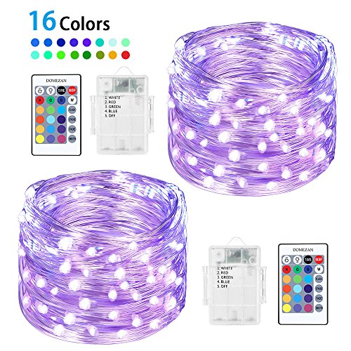 Fairy Lights, DMEZAN 2 Set 16 Colors Changing 50 LED String Lights Battery Operated Waterproof 16.4ft Copper Wire Firefly Lights Dimmable with Remote Control (Timer)