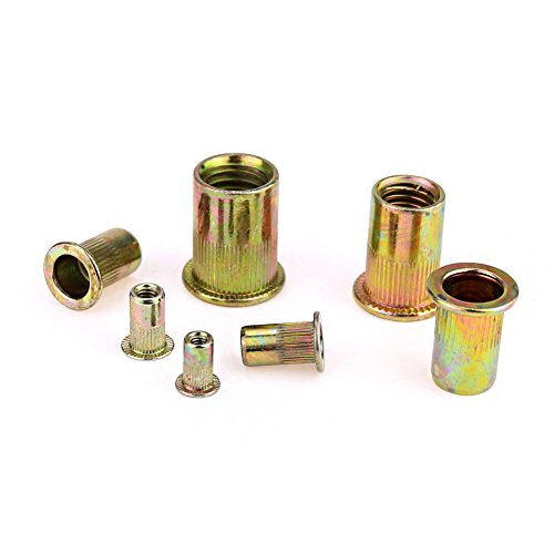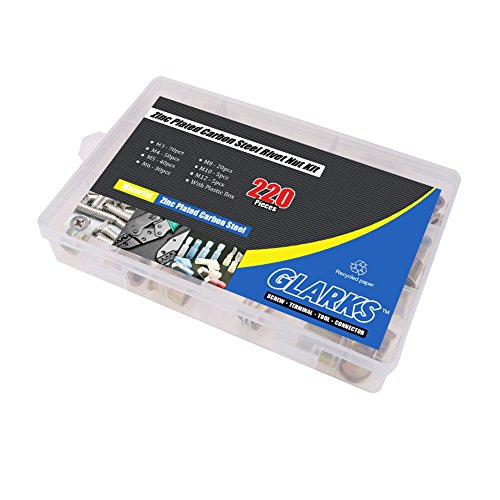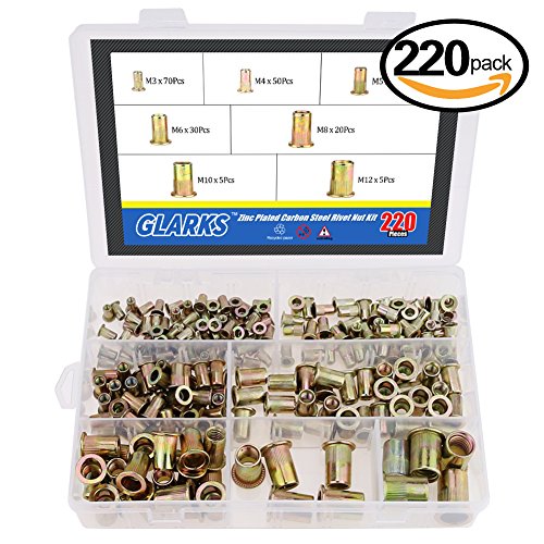 Glarks 220-Pieces Mixed Zinc Plated Carbon Steel Rivet Nut Kit Threaded Insert Nutsert - 7 Size M3 / 4 / 5 / 6 / 8 / 10 / 12