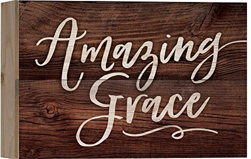 Amazing Grace Script Design Brown 10 x 7 Inch Solid Pine Wood Boxed Pallet Wall Plaque Sign