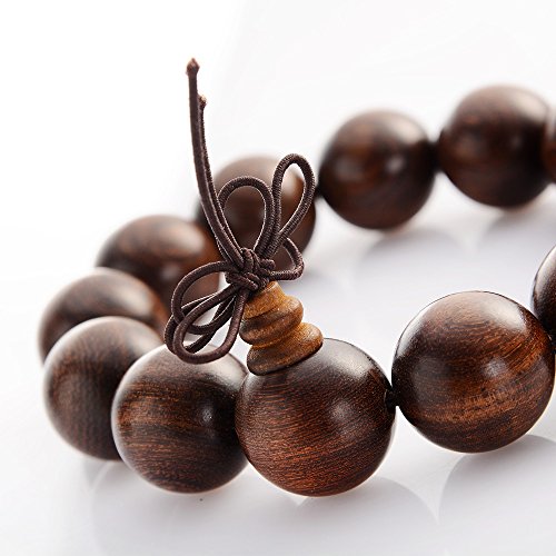 Dictea 18mm Buddha Beads Wrist Mala - Black African rosewood Asian Meditation Prayer Beads
