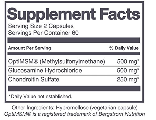 -. Feature : SUPPORT JOINT MOVEMENT - Soothe joint pain, regain comfort as you move with our complex treatment / MAINTAIN CONNECTIVE TISSUES - Strengthen connective tissue as a natural way to help alleviate pain / HEALTHY CARTILAGE - Our formula promotes healthy cartilage for soothing joint pain in men and women / PAINFUL JOINT SOOTHER - Chondroitin sulfate and glucosamine can provide relief for stiff knee joints / 3 INGREDIENTS - OptiMSM, Glucosamine Hydrochloride and Chondroitin Sulfate for a synergy of strength