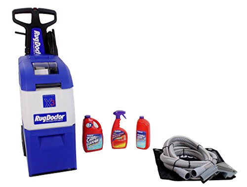 Studio : Rug Doctor Publisher : Rug Doctor Binding : Kitchen Product Description Brand new Rug Doctor X3 This is the newest model of Rub Doctor the X3 which folds up small enough to store in a closet or out of your way (see pictures). The handle Adjusts for different heights so if you are tall or short this will be perfect for you Wide 10.8 inch cleaning path almost an inch wider than the older Mighty pro model. Powerful 28 lbs per square inch pump water pressure. Large 3.0 Gallon solution tank capacity. Compare this to most big box shampooers that only have around 1 gallon tank. This is nice as you wont be filling it up constantly as you shampoo. Vacuum Motor: 1.9 hp with 101" (257 cm) water lift - an important feature - vacuum power translates to how quickly carpets are able to dry. Rug Doctor machines remove over 80% of the dirt carrying solution. No department store home units even come close. The Rug Doctor unique vibrating brush: Different from rotary brushes which can have a matting effect, the back and forth motion of the vibrating brush allows thorough cleaning of each fiber and helps the vacuum action in lifting the fibers with each pass. Carpets dry fluffy and soft FREE BONUS GIFT TO BUYER - Buy this now and get a 12 foot hose and upholstery tool shampooer attachment! Long enough to shampoo stairs, couches, cars and more. SPECIAL BONUS $75 Value- So you can start cleaning right away when you get this shampooer we have inlcuded 3 Large bottles of solution. They are 1 bottle (quart size) of carpet cleaning solution, 1 bottle of spot stain remover cleaning solution, and 1 bottle of odor remover solution. These will be included with your Rug Doctor. Great Vacs is a authorized Rug Doctor Dealer. So you will be protected by the 5 Year Rug Doctor warranty. Think about it. All the "other" shampooers out there only have a 1 year warranty. That is about right. You will find Rug Doctor will clean about 5 times better and last about 5 times longer too 0