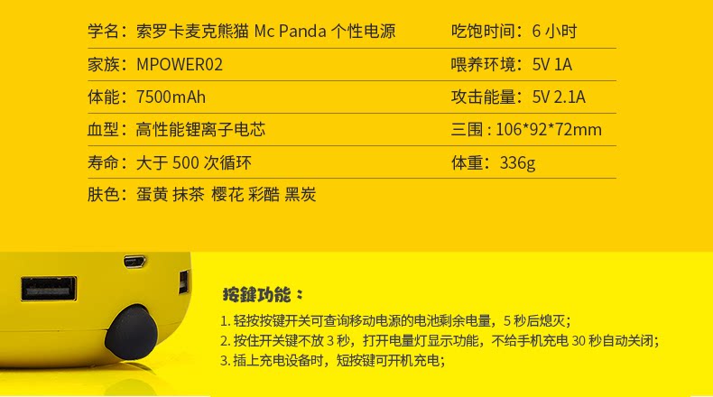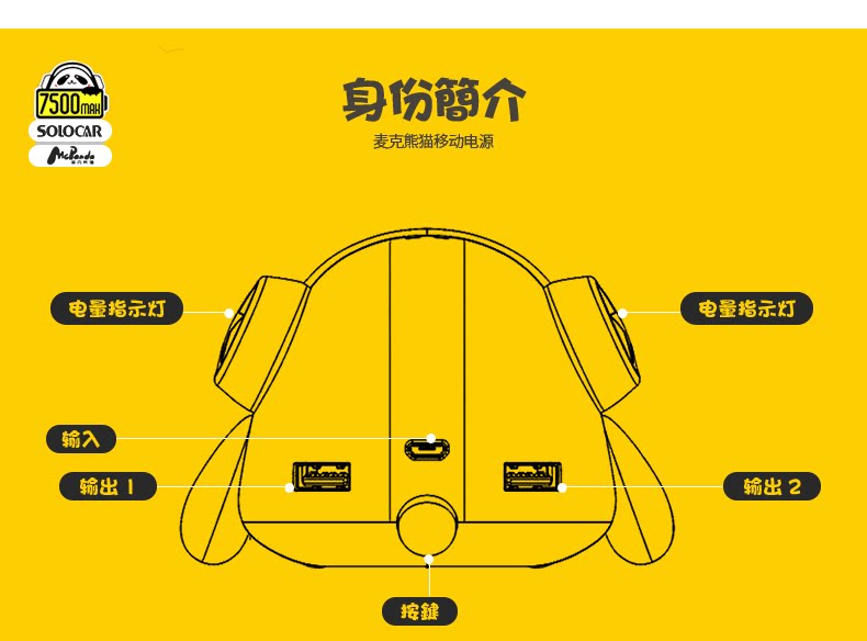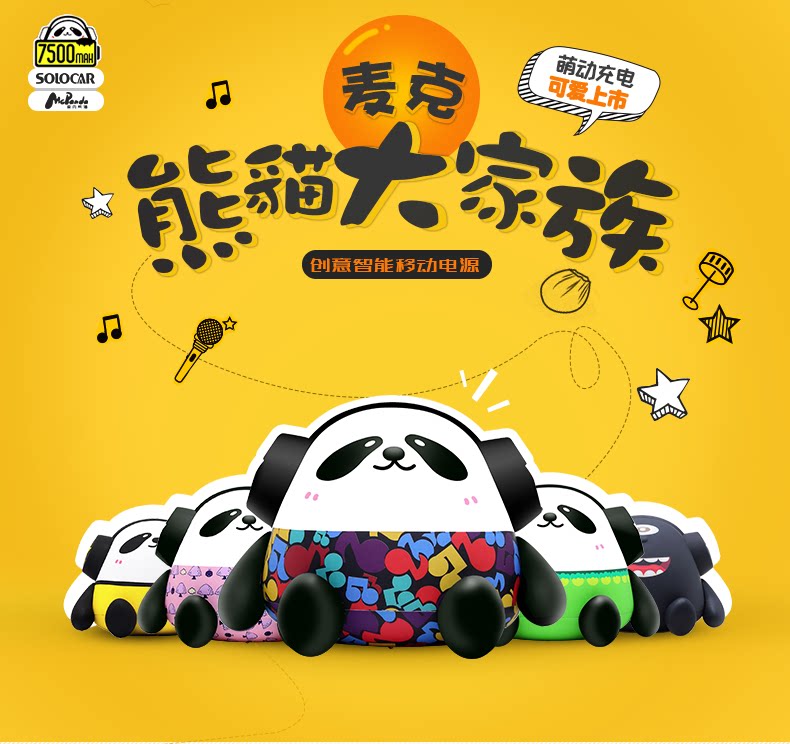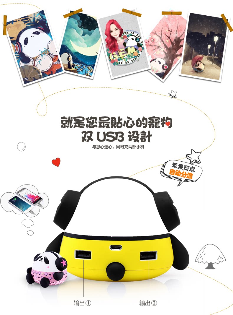 solocar索罗卡 熊猫创意礼物卡通充电宝 可爱女超萌个性移动电源