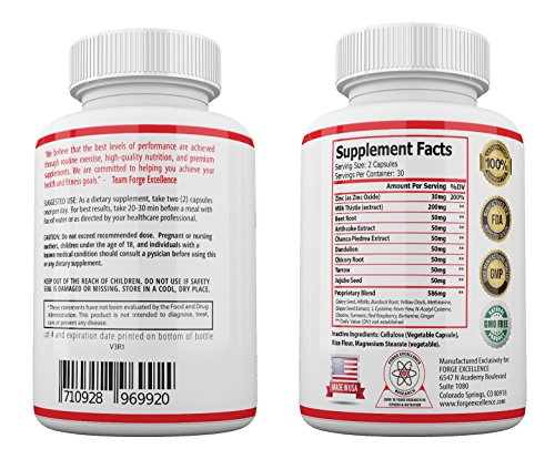 -. Binding : Health and Beauty -. Brand : Forge Excellence -. EAN : 0710928969920 -. Feature : ★ REVITALIZE YOUR LIVER- Pure and potent liver detox pills with natural ingredients - take these capsules to refresh and rejuvenate your liver - reduce bloating and even increase brain function / ★ FEEL AMAZING- These liver cleanse supplements contain ingredients such as Milk Thistle - which is a powerful antioxidant - and Dandelion which can also support urinary tract health / ★ CURE YOUR HANGOVER- • Artichoke stimulates blood flow from the liver - this offers fantastic liver support and reduces the symp of heartburn as well as reduces hangovers / ★ • Milk thistle is a natural treatment for liver problems and can help ease the symp of gallbladder problems and associated ailments - this is also a powerful antioxidant / ★ 100% MONEY BACK GUARANTEED- Be completely satisfied with our Revitalize Liver Health supplement or receive a full refund! Forge Excellence is your superior nutraceutical company focused on helping you achieve your health and fitness goals. BUY WITH CONFIDENCE! -. IsAdultProduct : 0 -. Label : Forge Excellence -. LegalDisclaimer : These statements have not been evaluated by the Food and Drug Administration. This product is not intended to diagnose, treat, or cure any disease. Actual product packaging and materials may contain more and different information than what is shown on our website. We recommend that you do not rely solely on the information presented and that you always read labels, warnings, and directions before using or consuming a product. Please see our full disclaimer below. -. Manufacturer : Forge Excellence -. MPN : 16-0004 -. PackageQuantity : 1 -. PartNumber : 16-0004 -. ProductGroup : Health and Beauty -. ProductTypeName : HEALTH_PERSONAL_CARE -. Publisher : Forge Excellence -. Studio : Forge Excellence -. Title : Forge Excellence - REVITALIZE LIVER HEALTH–Hangover Cure–Contains Milk Thistle + Dandelion + Artichoke + Yarrow + Jujube + Chanca Piedra –Liver Support Supplements For Men And Women - 60 Capsules -. UPC : 710928969920