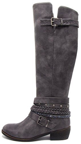 Sugar Women's Tia Tall Shaft Riding Boot with Buckle and Woven Wraparounds