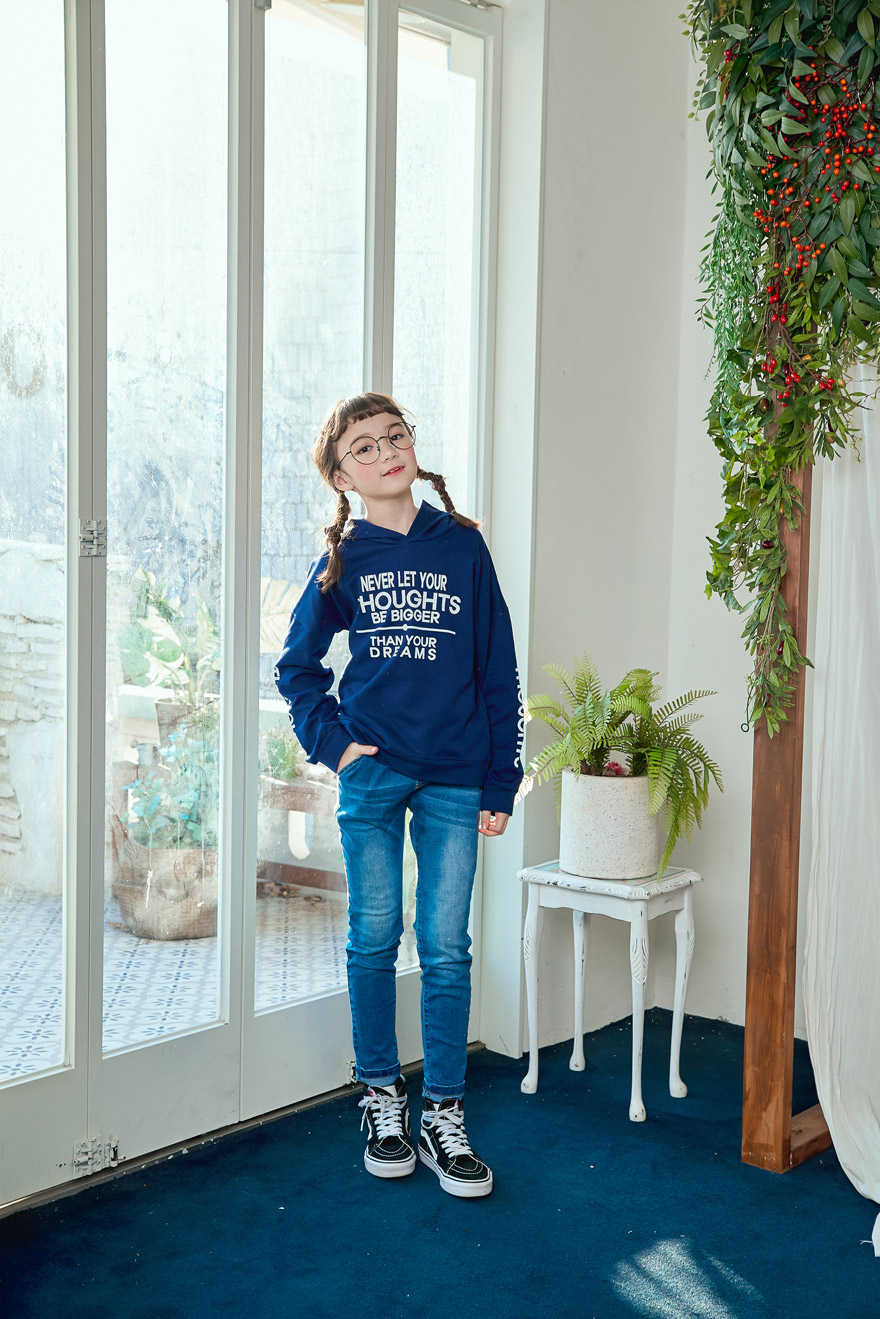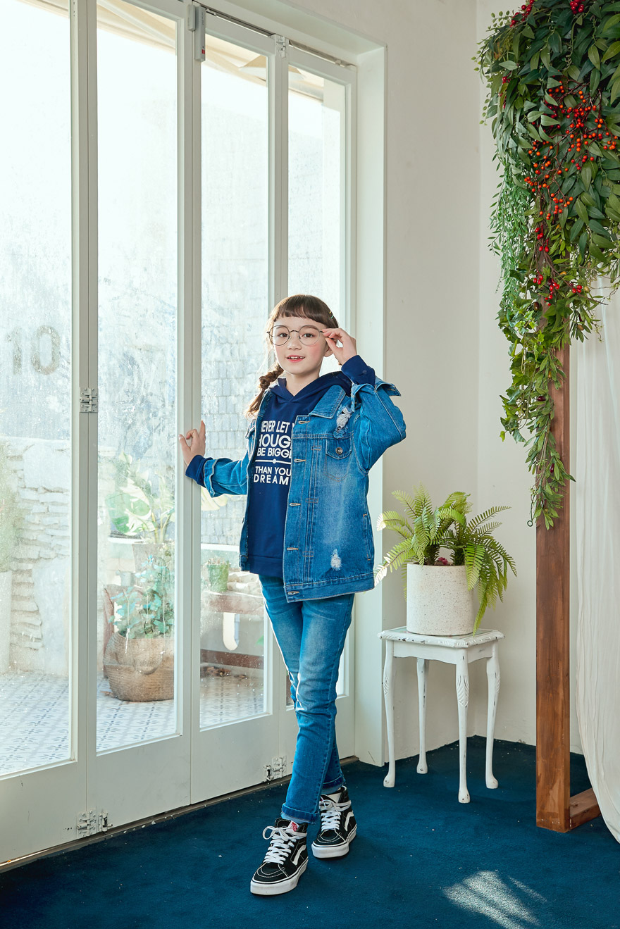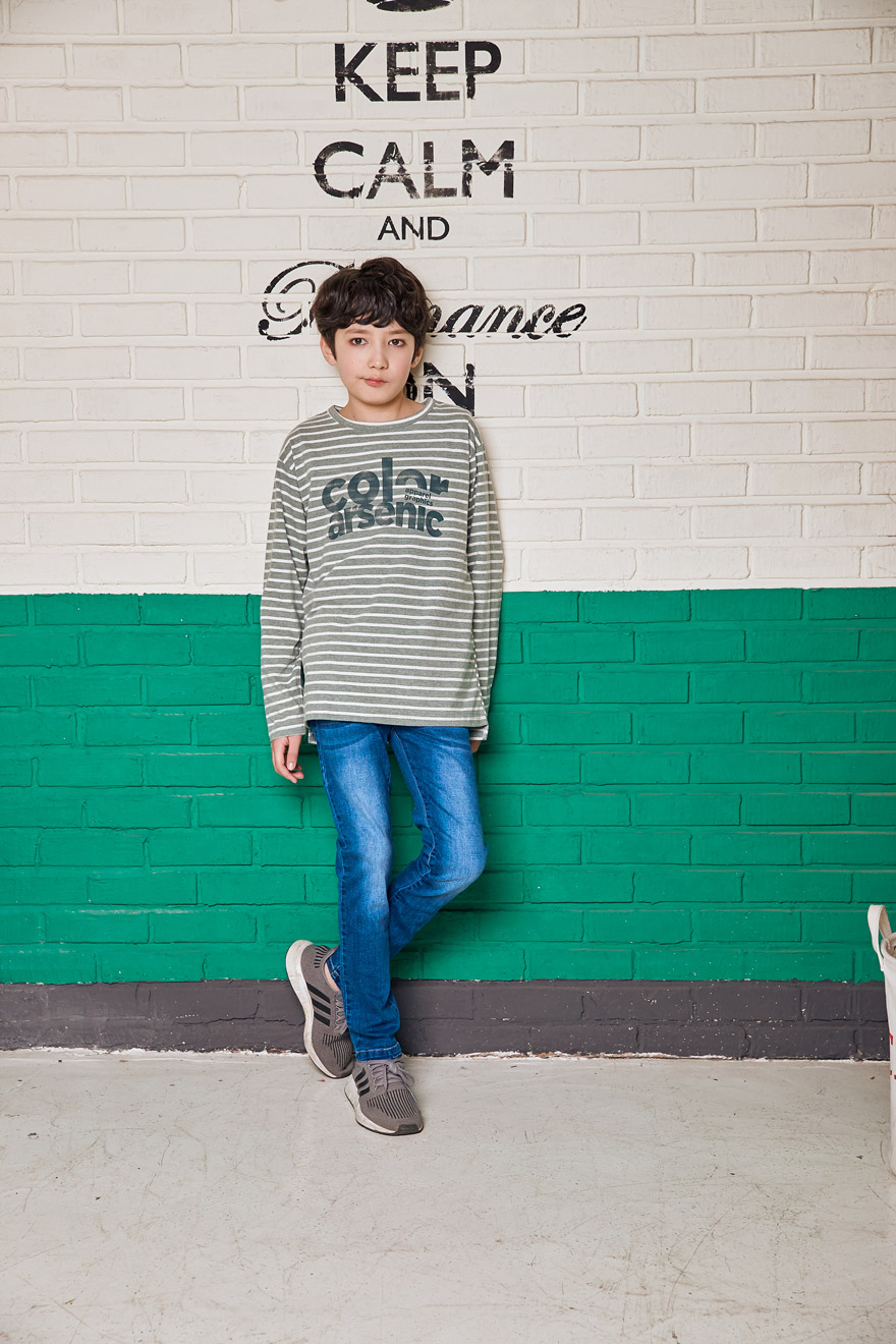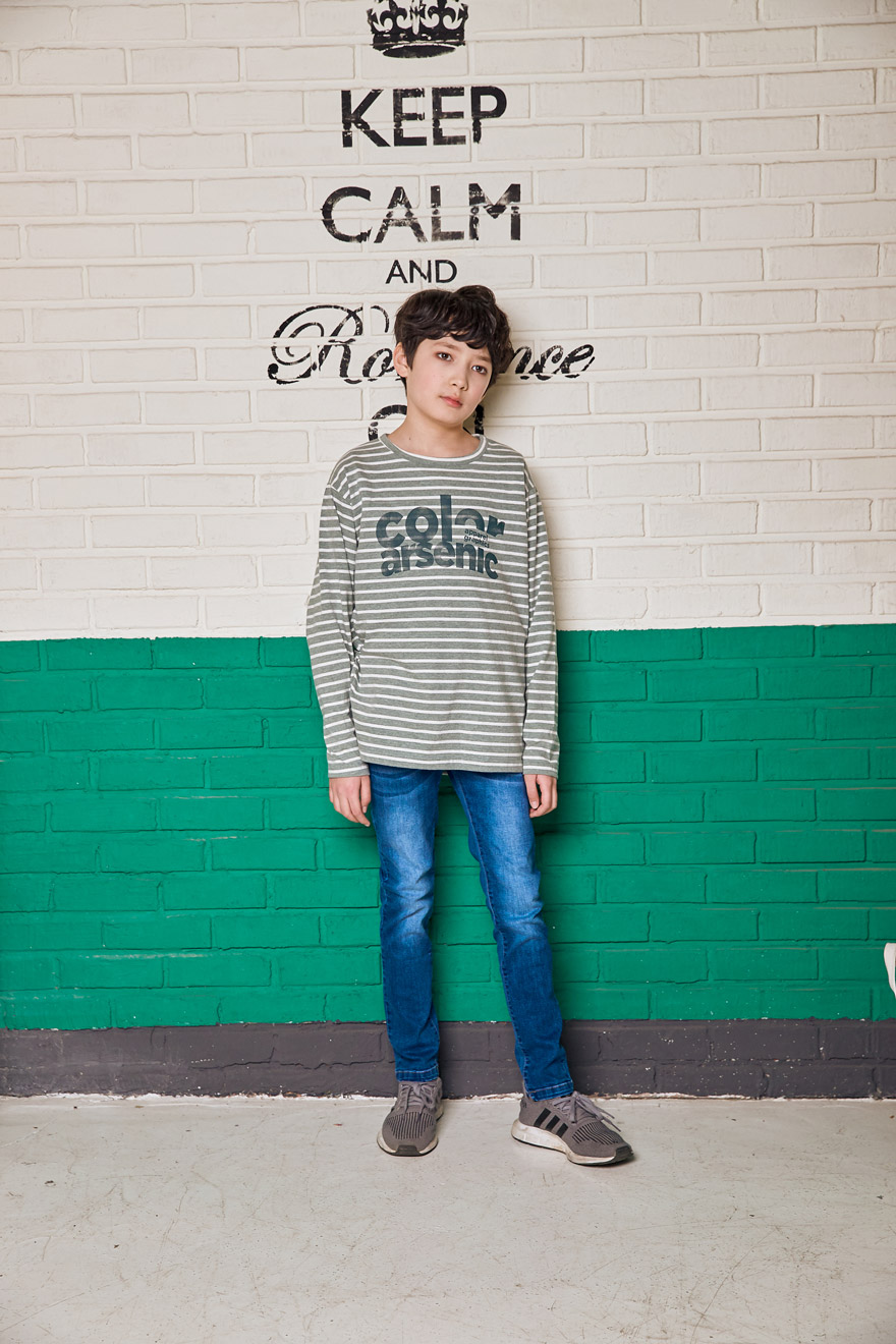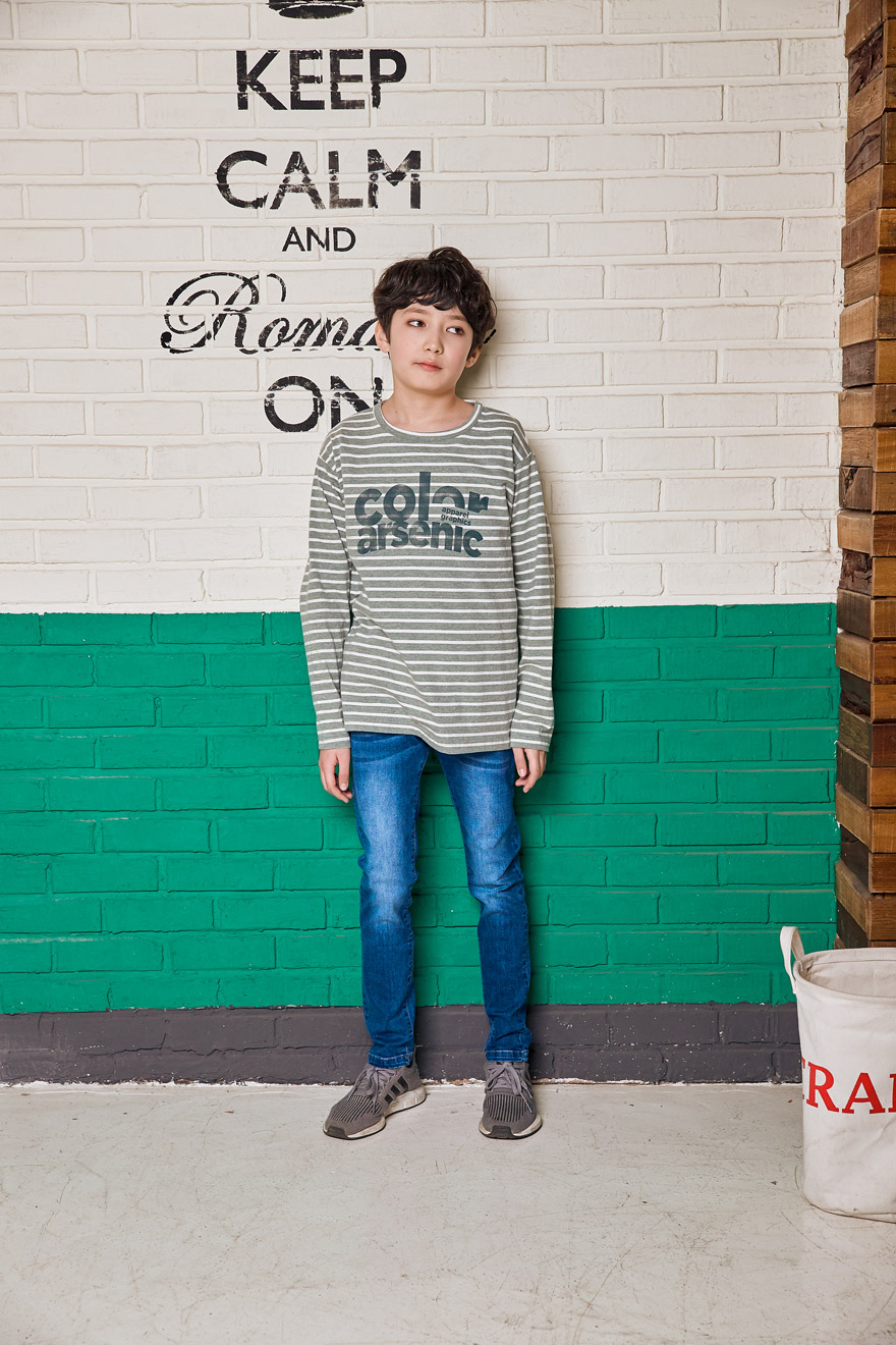 9, 11, 13, 15, 17호로 준비되어 있으며 하단에 측정된 사이즈 표를 참고해 주세요. 이 제품은 표준 사이즈로 디자인 된 제품입니다. 피팅한 여아의 모델은 143cm에 31kg으로 다소 마른체격이며, 여유있게 진청 13호를 착용하였습니다. 피팅한 남아의 모델은 151cm에 34kg으로 다소 마른체격이며, 여유있게 진청 15호를 착용하였습니다. 깔끔한 핏으로 잘 맞네요 ;)