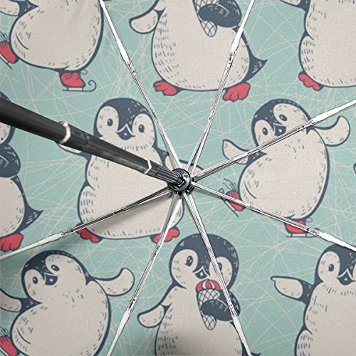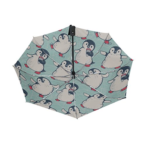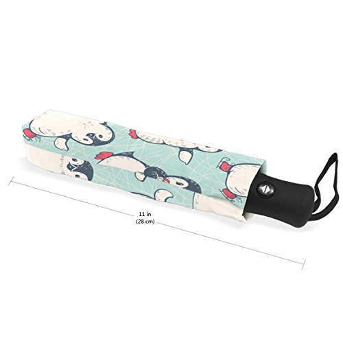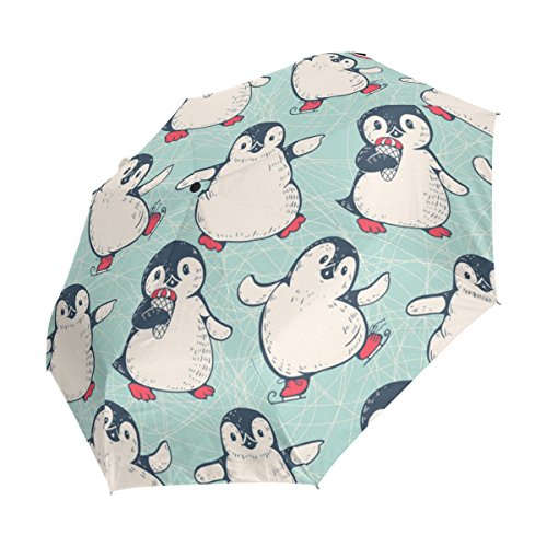 materials: made of 100% polyester pongee waterproof fabric. Weight: it is lightweight, 393g. Single-sided printing. Style: automatic open and close umbrella; foldable mini travel umbrella. Can be used on rainy and snowy day. Suitable for boys, girls, women and man. Feature: Light weight, small, portable. This Cute Penguins Ice Cream Blue Background folding umbrella is also a perfect Christmas gift, new year gift, and back to school gift. 0