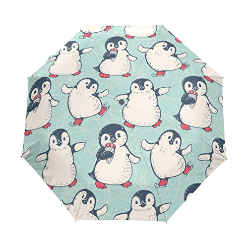 Studio : Naanle Publisher : Naanle Binding : Misc. Product Description Cute Penguins Ice Cream Blue Background Auto Foldable Umbrella is easy to open and close. You will expect the rainy day when you have this umbrella so that you can use it.