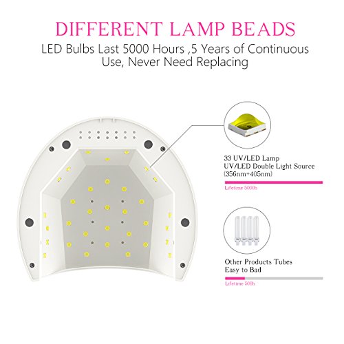 33 lamp beads: Patented UV/LED lamp 48W beads provide unique properties: fast, very energy efficient and durable construction