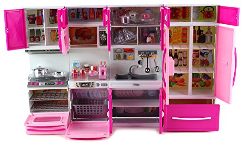 MY HAPPY KITCHEN FULL DELUXE KIT BATTERY OPERATED TOY DOLL KITCHEN PLAYSET W/ LIGHTS, SOUNDS, PERFECT FOR USE WITH 11-12" TALL DOLLS