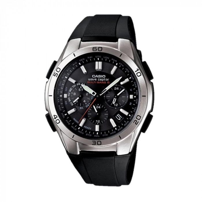 | 時刻を自動修正。世界6局の電波を受信するマルチバンド6を搭載したクロノグラフソーラー電波時計です。 |