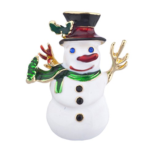 Lux Accessories Christmas X-mas Holiday Snowman Enamel and Goldtone Brooch