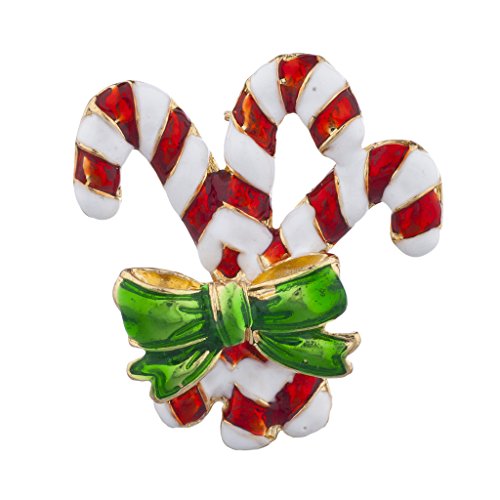 Lux Accessories Candy Cane Christmas Holiday Red White and Green Enamel Brooch