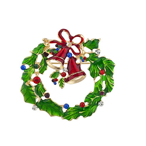Lux Accessories Holiday Festive Christmas Xmas Wreath Bells Stone Brooch Pin