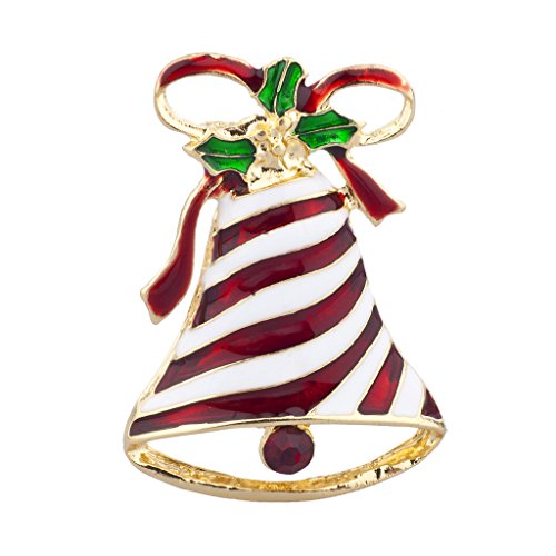 Lux Accessories Silvertone Christmas X-mas Holiday Bell Ribbon Enamel Brooch