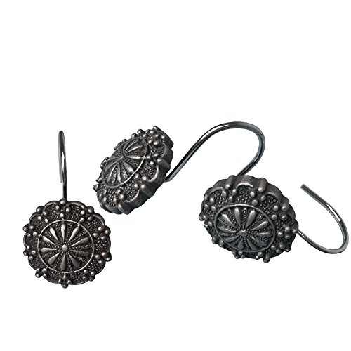 Chictie Vintage European Shower Curtain Hooks Bronze Decorative Round Shape Resin Chrome Rings Set of 12 -100% Rust Proof