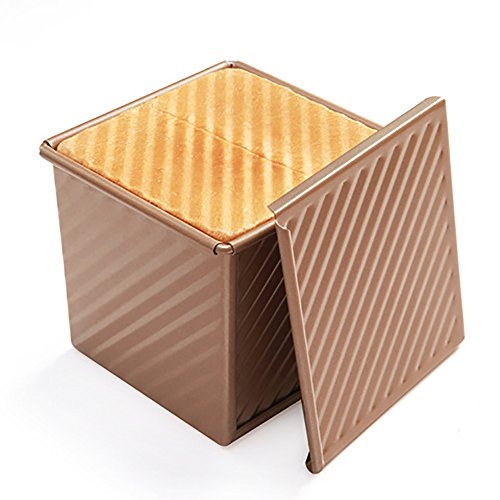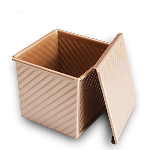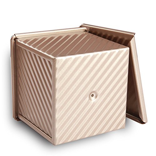 Mini Nonstick Loaf Pan, Aluminized Steel Bread Toast Mold with Cover, 4.5 IN Gold