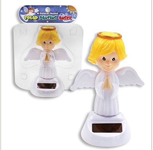 -. Feature : Measures 4.25 inches tall / Expose solar strip to light to make angel wings and head move / Plastic