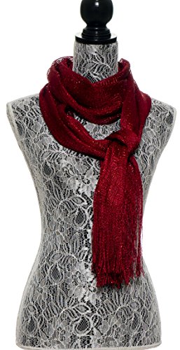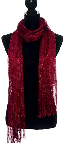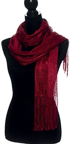 Title : Petal Rose Sheer Mesh Glitter Sparkle Shawl Wrap Fringe Prom Weddings Party Evening Scarfs for Women (Burgundy)