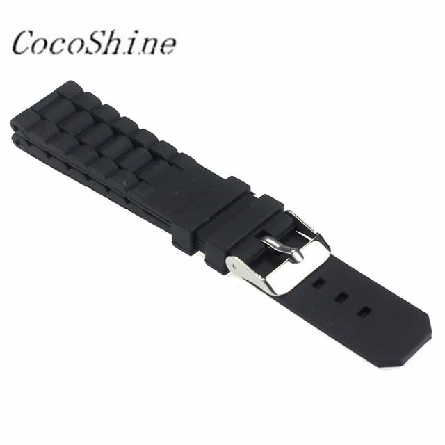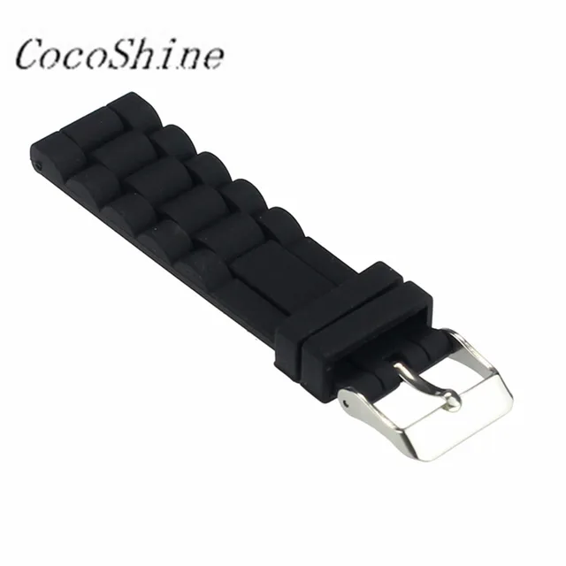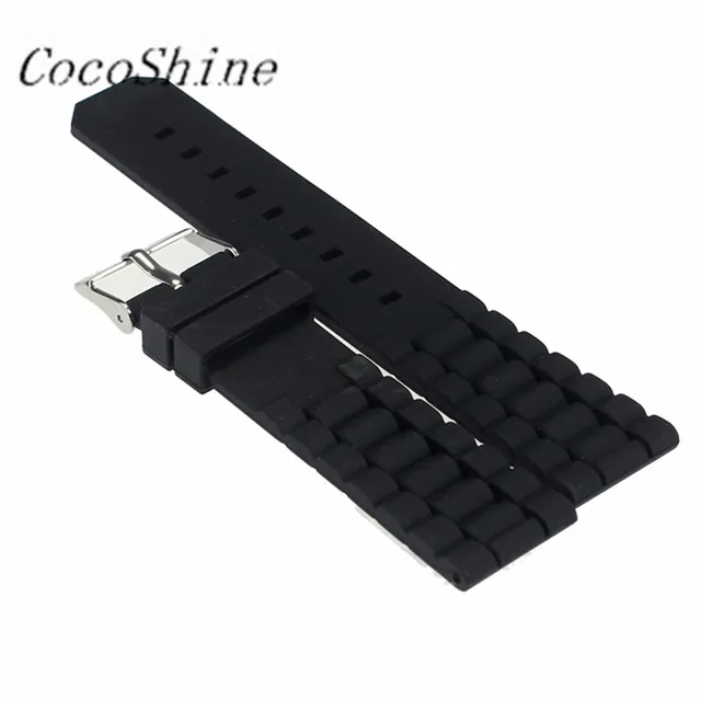 CocoShine D-868 남성 블랙 실리콘 고무 다이버 시계 밴드 스트랩 화석 네이트