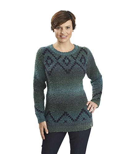 Where tradition meets texture, the result is our round trip fair isle crew. The natural curled texture of boucle yarn imparts a soft, fluffy feel, random stripes produce a rich shaded effect. A traditional fair isle pattern accents the yoke, cuffs and hem. Fully fashioned from an acrylic/wool/poly blend.Feature