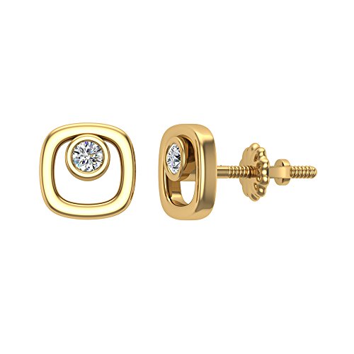 Cushion Shaped Bezel-set Diamond Earrings in 10K Solid Gold