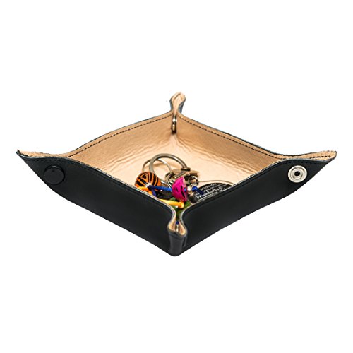 - RUSTIC BRASS METAL SNAPS: The Valet Tray clips together with sturdy, heavy duty Brass Metal Snaps that firmly hold the corners in place and won’t come apart unwillingly. Once clipped together, the space within the Valet Tray measures at 4.5 inches by 4.5 inches.