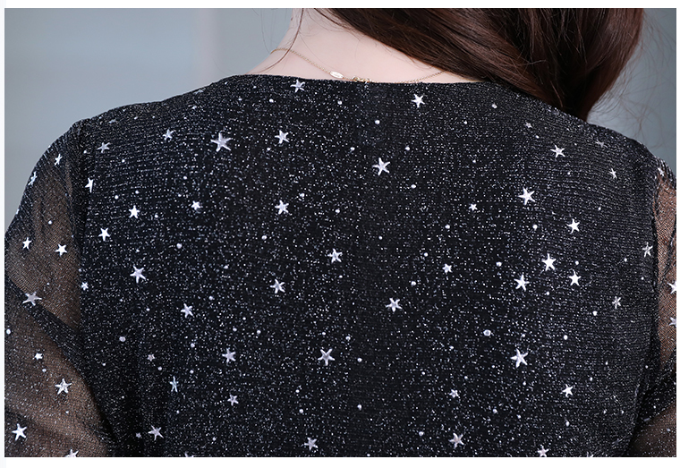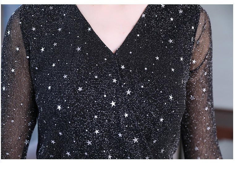 Vネックの星柄レーストップス+上品な丈感のタイトスカート 嬉しい二点セット!