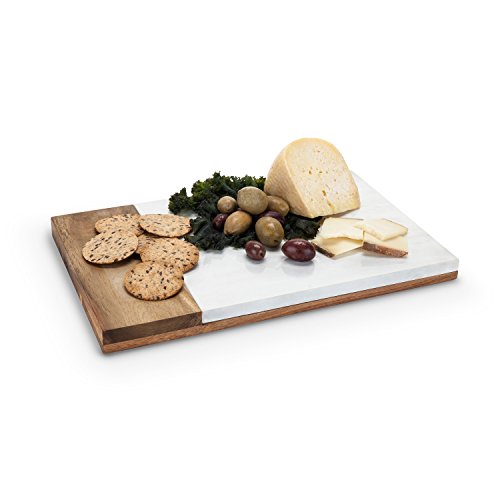 Bound in rich acacia wood, this weighty board is inset with a perfectly cut slab of polished white marble. Upon it, the beautiful hues and patterns of artisan cheese varieties are displayed to exquisite effect.